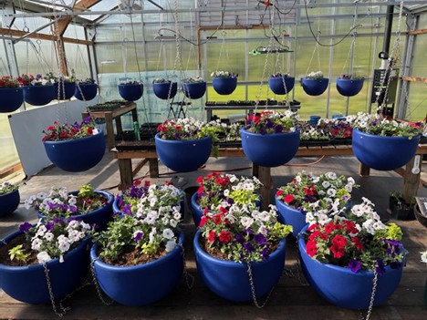 Self-sufficiency and sustainability: Each year, the Port hangs out approximately sixty hanging baskets, each containing Tidal Wave and Easy Wave trailing petunias, along with purple heart. In years past, these hanging baskets were purchased from an off-island vendor and transported to the Marina for display. And the process was repeated the following year. As the costs steadily climbed it became apparent that something else had to be done.